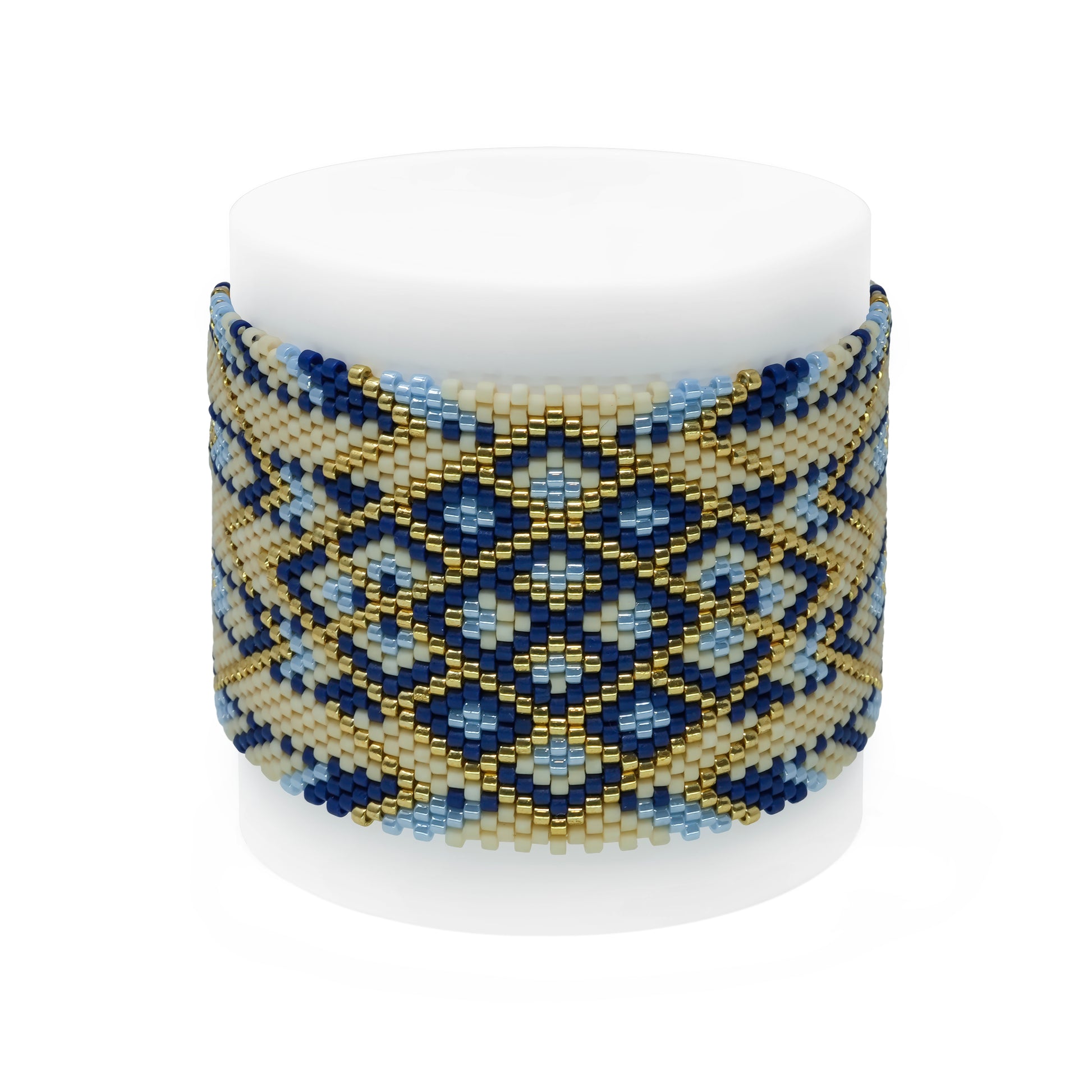 Elevate your style with this luxury handwoven cuff bracelet, meticulously crafted on a traditional Egyptian loom with more than 2,000 premium Miyuki beads. Each piece is a true work of art, combining intricate weaving techniques with bold, geometric patterns for a timeless and sophisticated look.