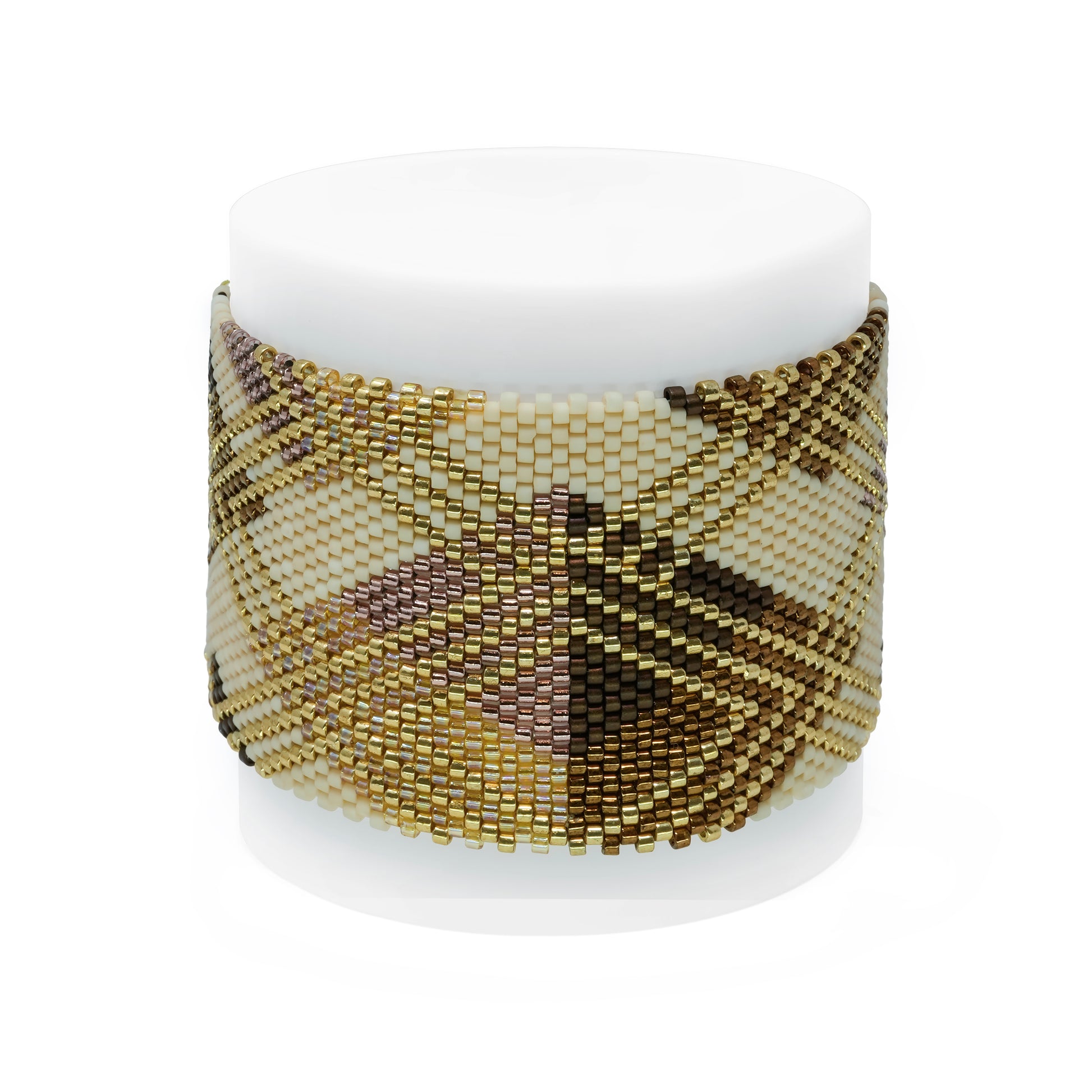 Elevate your style with this luxury handwoven cuff bracelet, meticulously crafted on a traditional Egyptian loom with more than 2,000 premium Miyuki beads. Each piece is a true work of art, combining intricate weaving techniques with bold, geometric patterns for a timeless and sophisticated look.