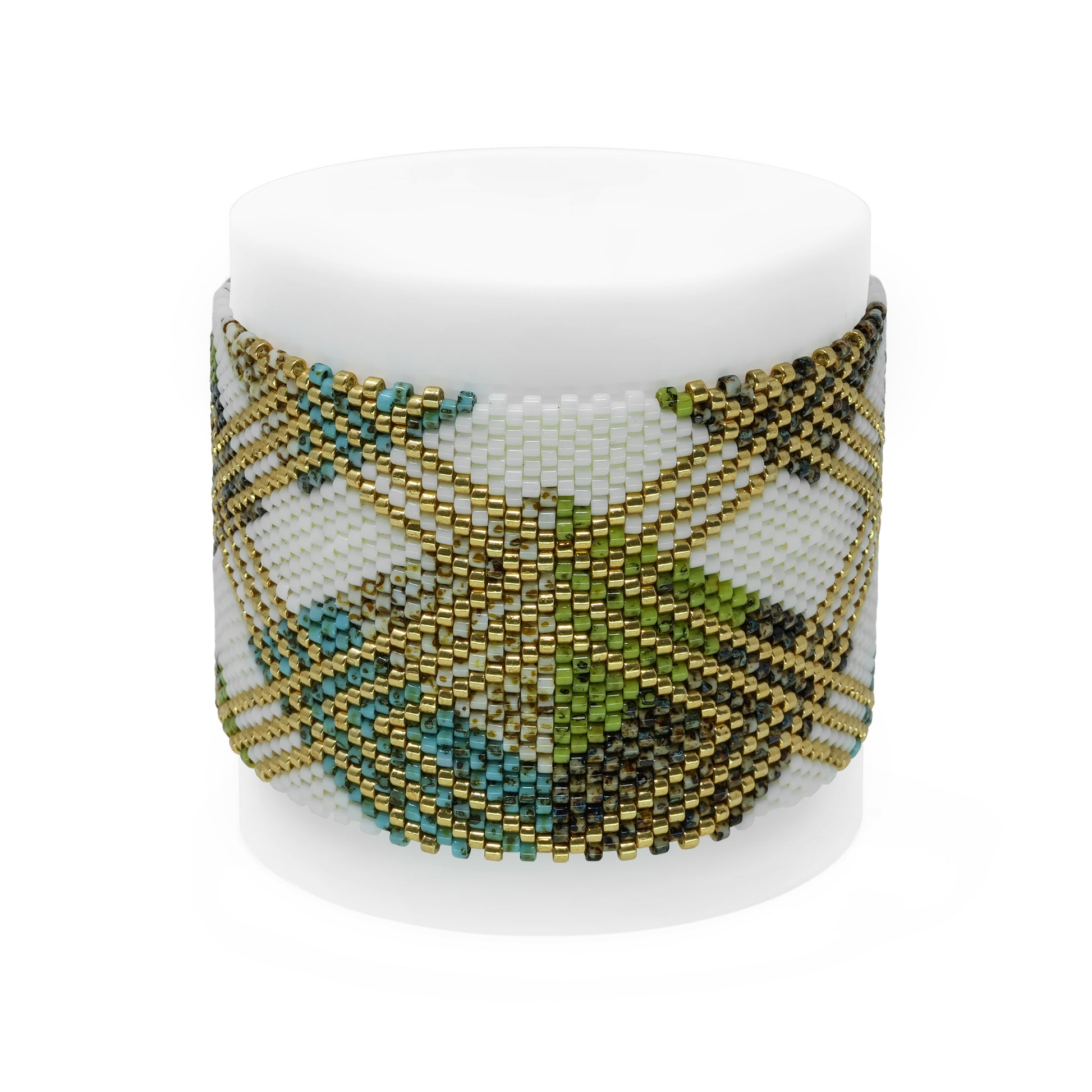 Elevate your style with this luxury handwoven cuff bracelet, meticulously crafted on a traditional Egyptian loom with more than 2,000 premium Miyuki beads. Each piece is a true work of art, combining intricate weaving techniques with bold, geometric patterns for a timeless and sophisticated look.
